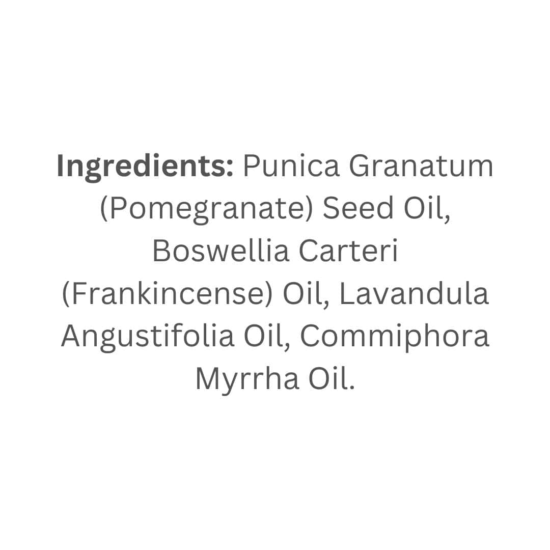 Punica Granatum (Pomegranate) Seed Oil, Boswellia Carteri (Frankincense) Oil, Lavandula Angustifolia Oil, Commiphora Myrrha Oil.